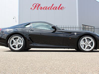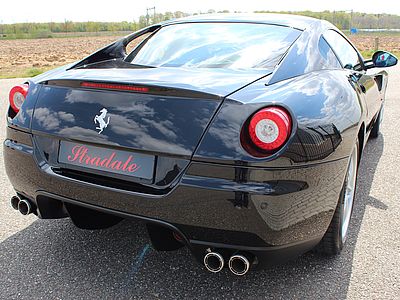 De 599 GTB Fiorano. Een prachtige mix van rasechte sportwagen en aangename snelweg cruiser. Zijn distinctieve vormen en de in de carrosserie geintegreerde spoilers kenmerken dit model evenals het gemak waarmee de auto dagelijks te gebruiken valt.