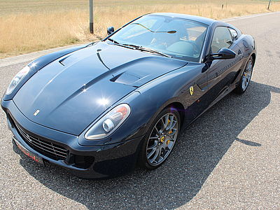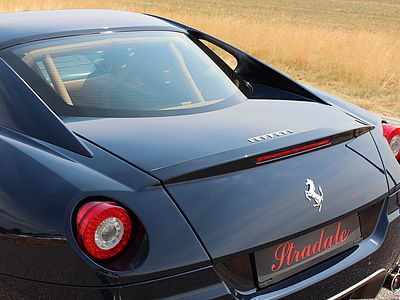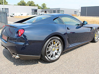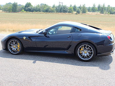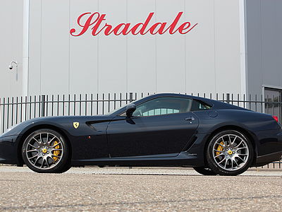 De 599 GTB Fiorano. Een prachtige mix van rasechte sportwagen en aangename snelweg gran turismo. Zijn distinctieve vormen en de in de carrosserie geintegreerde spoilers kenmerken dit model evenals het gemak waarmee de auto dagelijks te gebruiken valt.