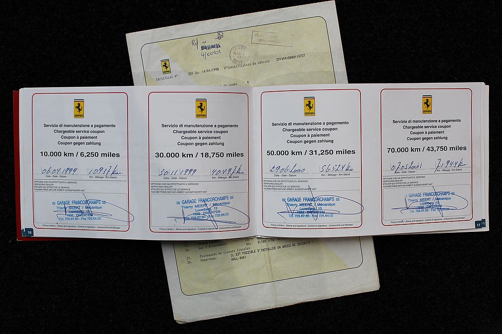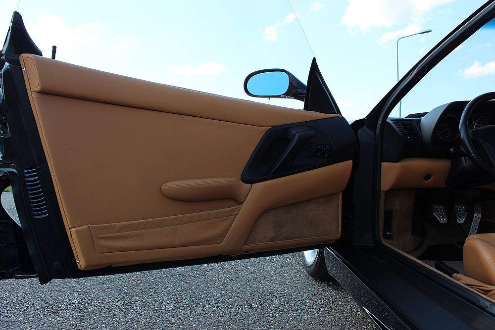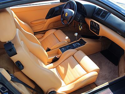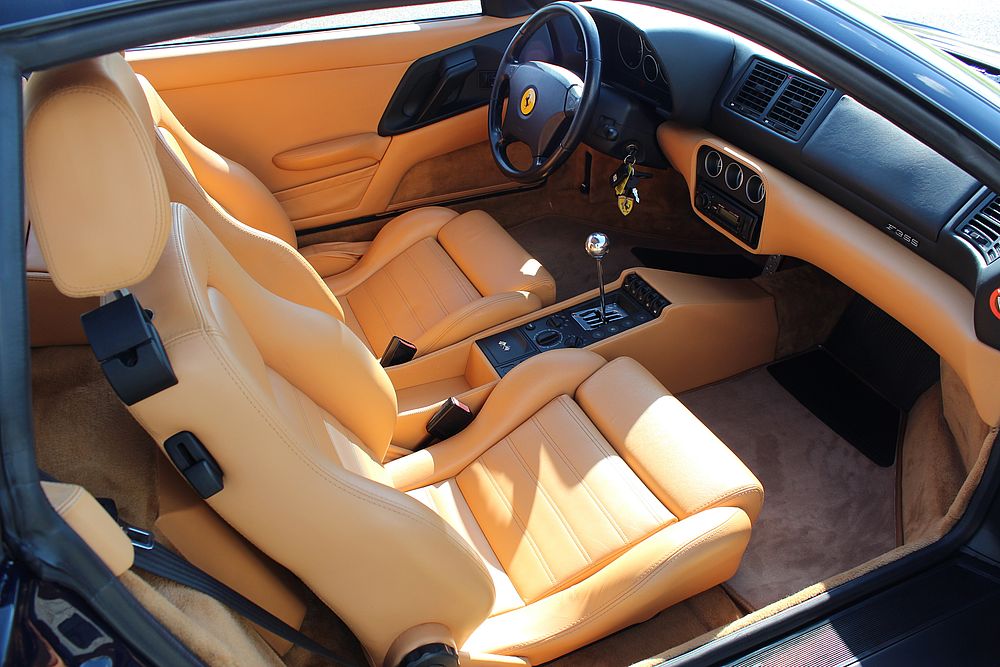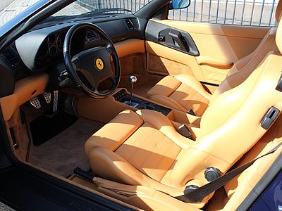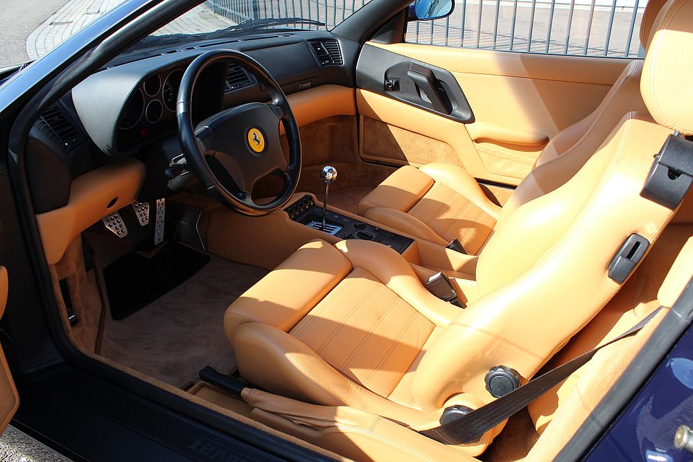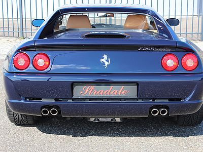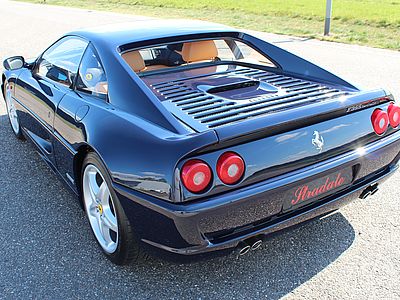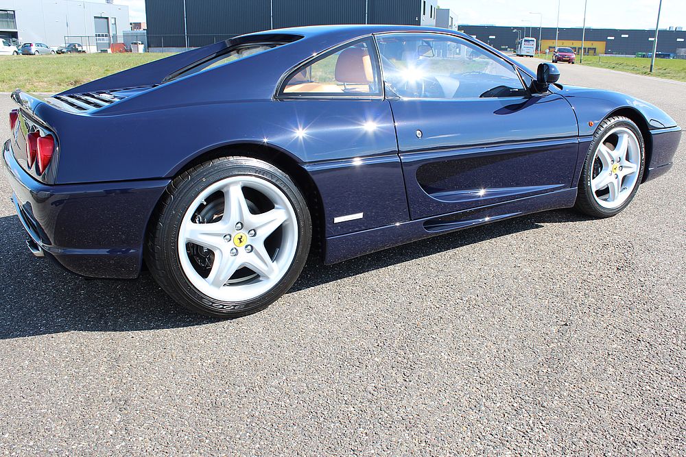 Deze fantastische Ferrari in de zeldzame en uiterst elegante Blu Pozzi met Tan kleurencombinatie, is in september 1998 geleverd aan Garage Francorchamps in Zaventem (Brussel) en is in de eerste 4 jaar van haar bestaan als dagelijkse auto gebruikt. Hierna is de wagen in handen gekomen van 2 liefhebbers en is de GTB zoals zo veel wagens alleen op mooie dagen voortbewogen. De F355 werd eind 2015 door ons overgenomen en is tot aanvang 2017 compleet gerestaureerd. Zowel de techniek, de optiek en de electronica werden compleet onder handen genomen. Geen plakkende interieurdelen meer, een nieuwe koppeling, gehele motorservice en nog vele andere zaken werden uitgevoerd. De resultaten zijn zichtbaar op de foto's en ook te bewonderen bij ons in de showroom.
