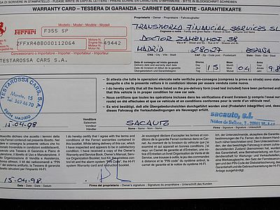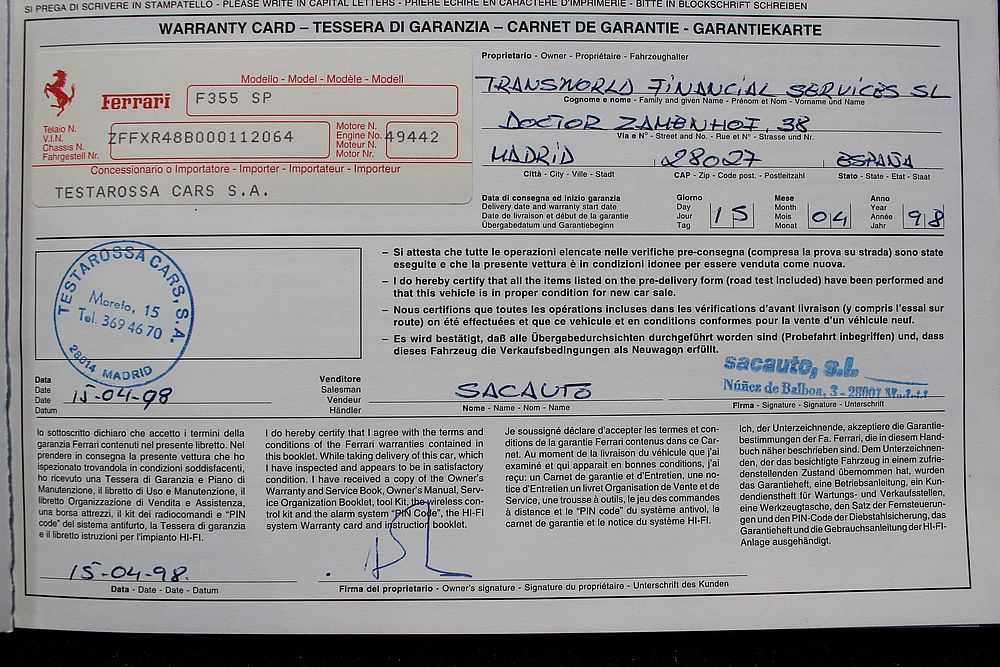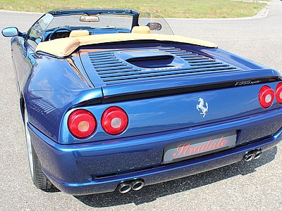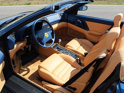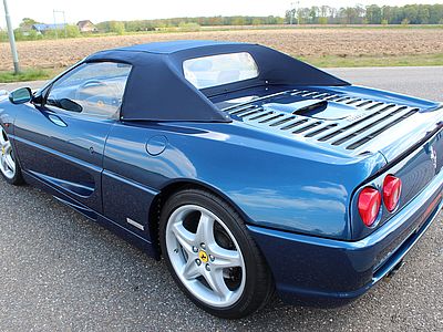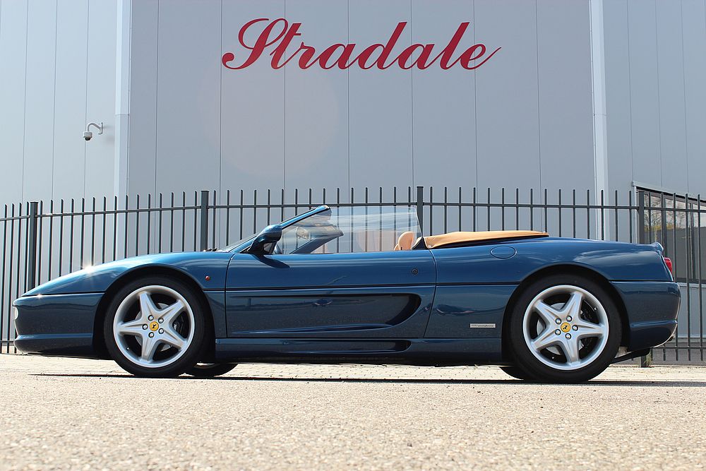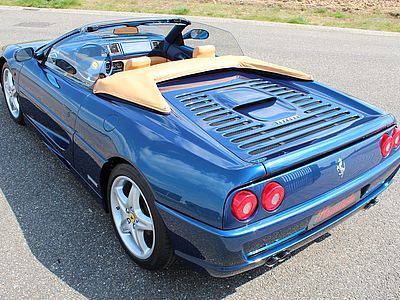 De hier getoonde F355 spider betreft in een 1998 in Madrid uitgeleverde wagen in een uiterst zeldzame en zeer elegante kleurstelling. Blu Nart (verwijzend naar het Amerikaanse raceteam) gecombineerd met het tan en de terugkerende blauw elementen in het interieur maken deze wagen uitzonderlijk. In 1998 geleverd in Madrid aan de eerste eigenaar en in 2002 aan een Spaanse notaris verkocht die de spider tot 2015 in zijn bezit heeft gehad. De spider is door ons compleet gedemonteerd en opnieuw opgebouwd binnenshuis. De lak is vernieuwd, alle sticky plastic delen zijn behandeld, het leder is uitgebreid behandeld en de motor is volledig geserviced en ook optisch in topstaat gebracht. Deze wagen is als nieuw. Uiterst zeldzaam en schitterend zoals de foto's ook betuigen.