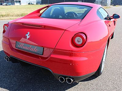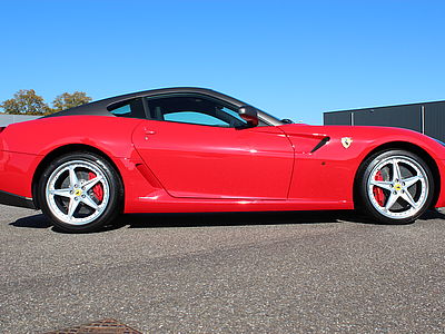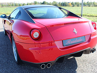 De 599 GTB Fiorano. Een prachtige mix van rasechte sportwagen en aangename snelweg cruiser. Zijn distinctieve vormen en de in de carrosserie geintegreerde spoilers kenmerken dit model evenals het gemak waarmee de auto dagelijks te gebruiken valt.