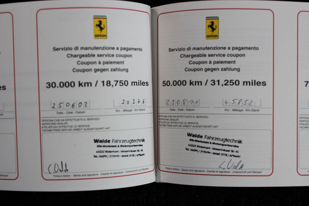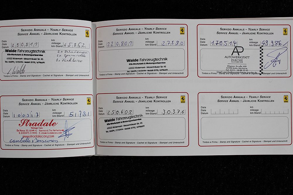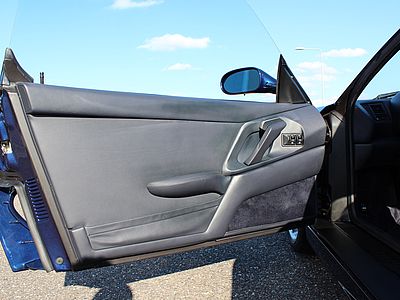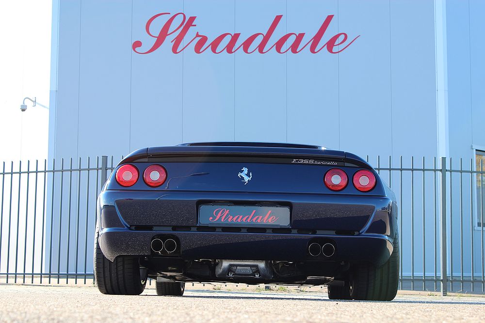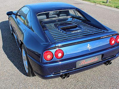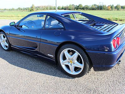 Deze schitterende 355 Berlinetta samengesteld in Blu Tour de France en Blue Scuro leer werd in 1998 aan de eerste , gelukkige eigenaar geleverd. Na enkele jaren werd de auto gekocht door een dame uit de modewereld waarvan wij het voertuig overnamen in 2016. Eind 2016 begon de complete restauratie van de F355 en werd deze optisch alsook technisch compleet vernieuwd. Zowel de techniek, de optiek en de electronica werden compleet onder handen genomen. Geen plakkende interieurdelen meer, een nieuwe koppeling, gehele motorservice en nog vele andere zaken werden uitgevoerd. Vervolgens is de hele body in keramische coating gezet ter bescherming van de lak. De resultaten zijn zichtbaar op de foto's en ook te bewonderen bij ons in de showroom.